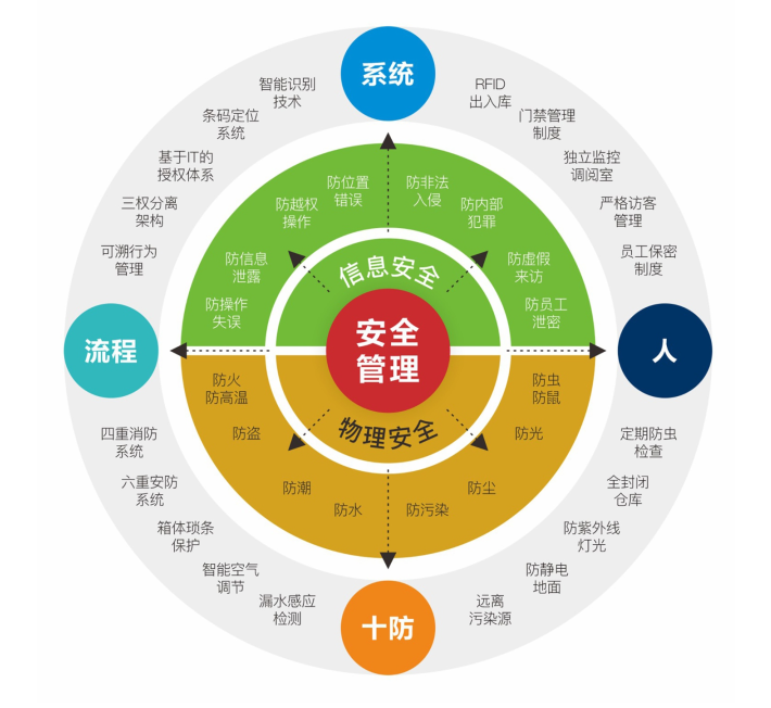 铁石科技从物理安全和信息安全方面建成“人防、物防、技防”三位一体的档案安全管理体系。