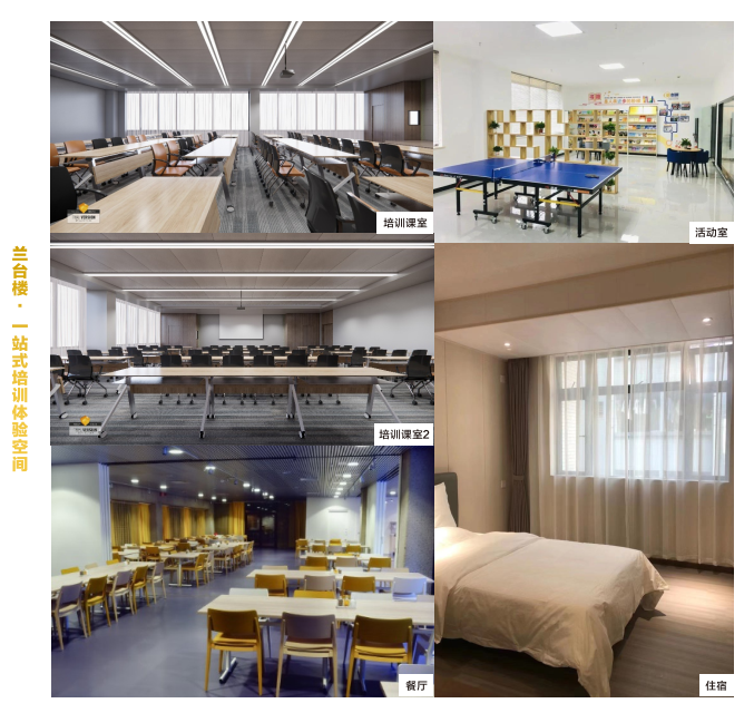 管家式服务管理,打造一站式培训体验。培训中心面积占1000平方米,共有3间多功能教室,能同时满足180人上课培训。培训中心以"学员至上,服务第一"为经营理念,配套设有客房100间,床位180张,以及干净精美的自助式宴会厅。从教学、住宿、餐饮、休闲放松等方面,全方位满足各式培训需求或行业交流活动,让学员可以全身心投入培训学习。